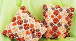 Филейное вязание, подушки с цветами